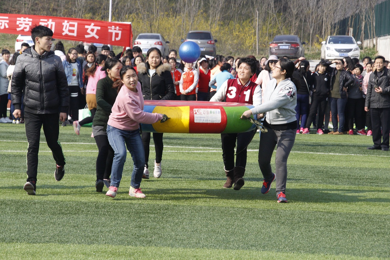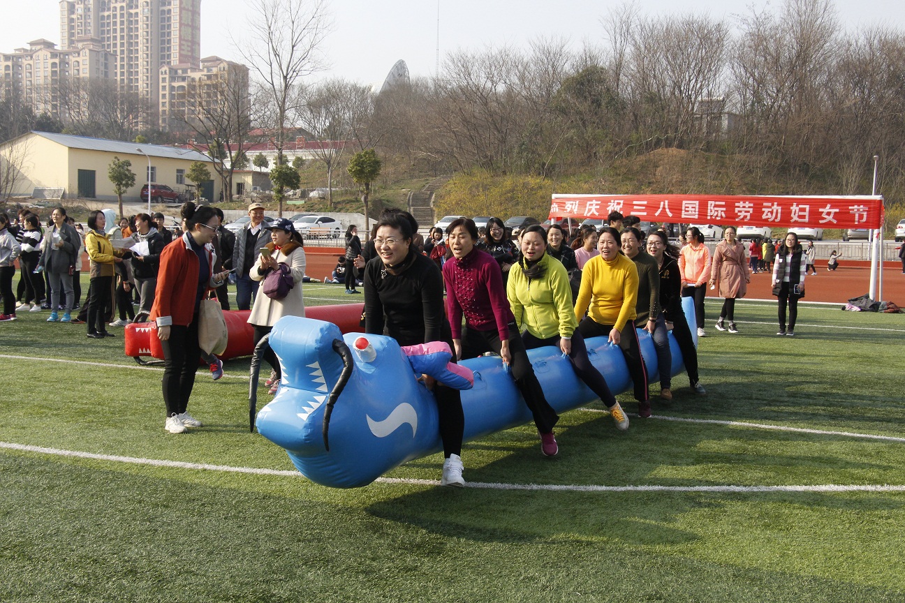 随后,趣味运动会在西体育场举行,共分为团结协助、雷霆战鼓、袋鼠接力、旱地龙舟四个比赛项目,极力考验了队员之间的团结协助能力。我院女职工个个兴致盎然,她们团结协作,默契配合,共同商议比赛战略。旱地龙舟中,队员们齐喊口号,以整齐的步伐一步步向终点迈进。经过激烈的角逐,我院女职工代表队取得了优异成绩。
