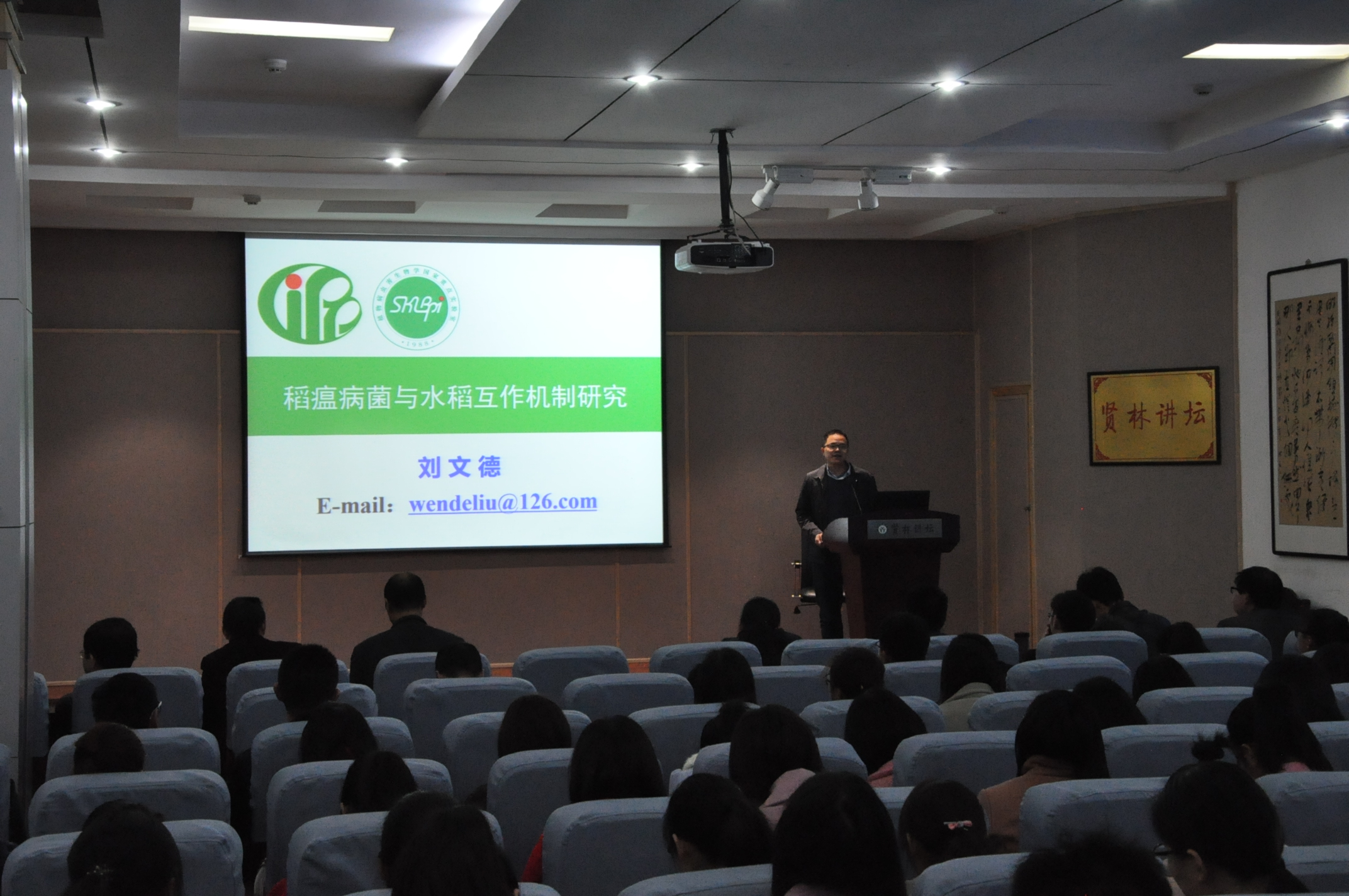 3月31日上午,应bevictor伟德官网邀请,中国农业科学院植物保护研究所王桂荣、刘文德和李云河研究员来我校讲学,在贤林讲坛报告厅分别作了题为“昆虫化学生态学研究新进展”, “水稻与稻瘟病菌互作机制研究进展”,“Bt水稻的非靶标效应研究”的专题报告。报告会由遗传所副所长饶本强教授主持,bevictor伟德官网及数学与统计学院相关专业的教师、学生参加了学术报告。