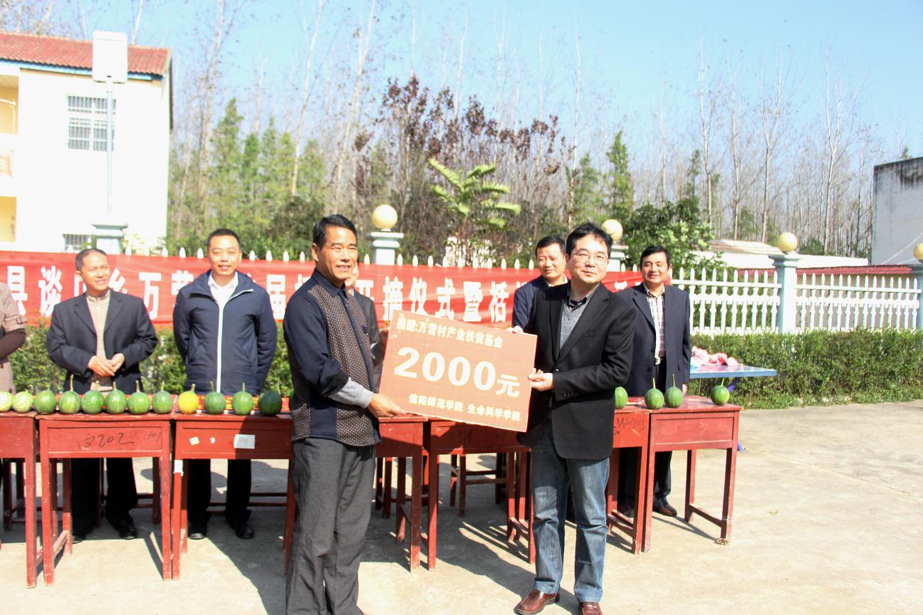 上午,袁红雨、杨霁虹应邀出席了万营村栝楼开摘仪式暨首届栝楼王评比活动。谈店乡党委书记陈红、乡长董涛、党委副书记张志奇、党委委员胡冬梅和万营村干部群众代表一起参加了本次活动。仪式由我院党委书记、万营村第一书记李向阳主持。袁红雨代表我院向万营村捐赠了2000元的产业扶贫基金。仪式结束后,在李向阳的陪同下,袁红雨一行人到结对帮扶的贫困户家中看望慰问了曹文田老人,并为他送去了米面油以及500元现金。随后他们一行人到万营村希望小学看望了我校义务支教志愿者,为她们送去了大米、食用油等慰问品,并向学校赠送了乒乓球拍、羽毛球拍等体育用品,为每个学生送去了精美保温杯等日常用品。