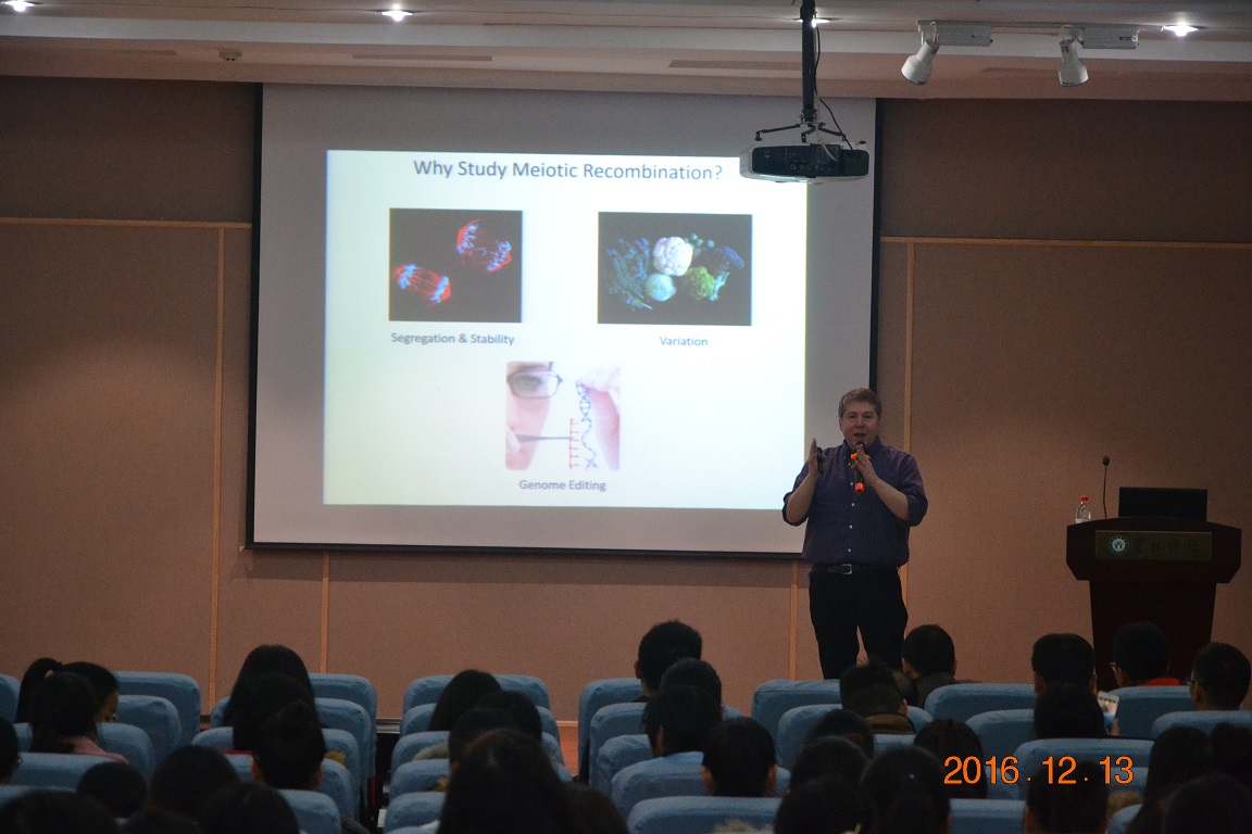 12月13日,美国北卡罗莱纳大学Gregory Paul Copenhaver教授在我校贤林讲坛作了题为“Genetic and Environmental Control of Meiotic Recombination in Plants”的学术报告。报告会由bevictor伟德官网遗传研究所副所长饶本强主持,近两百名师生聆听了报告。