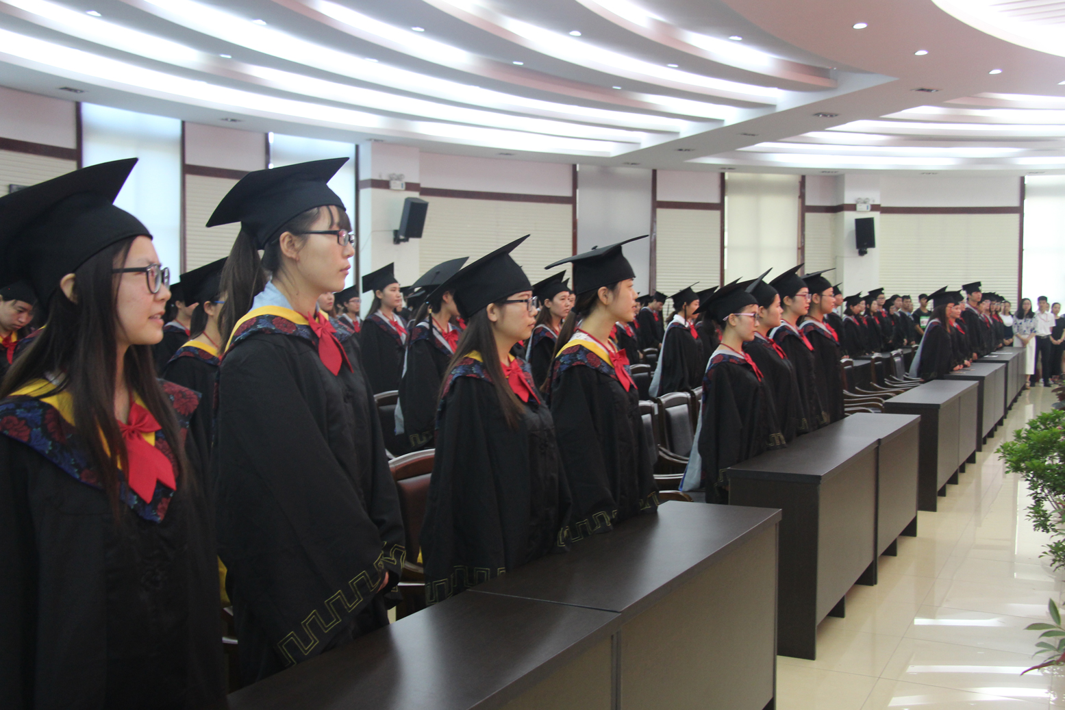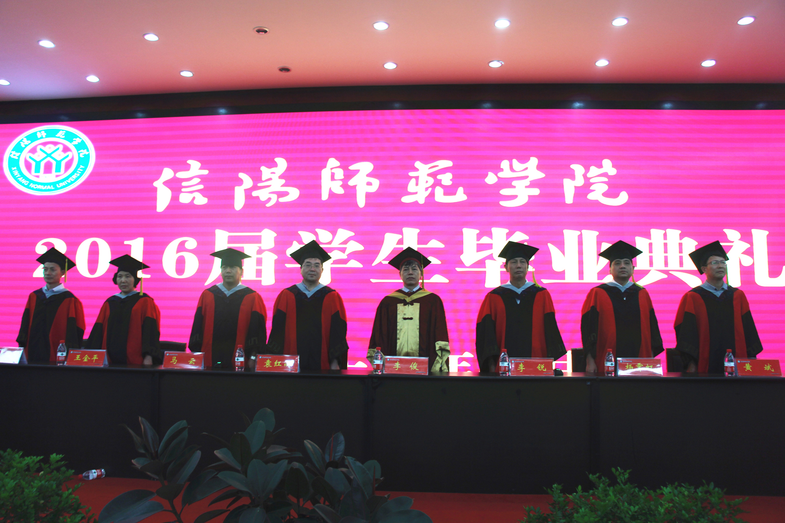 盛典在雄壮的国歌声中拉开帷幕。首先由我院学位委员会副主任委员马云宣读信阳师范学院关于授予2016届278名本科生学士学位的决定。院长袁红雨激情饱满的致辞,向即将告别母校踏上新征途的毕业生表达了最热烈的祝福,希望同学们志存高远、敢于创新、团结协作、淡泊名利,在学业上终身学习,丰富和完善知识结构,不断开拓进取,期望听到每位毕业生取得新进步获得新成就的好消息。随后,优秀毕业生代表姜凯重温了几年来与母校的点点滴滴,对母校和老师的辛勤培养表示衷心的感谢。在校生代表韩露向即将离开母校的毕业生们送上最诚挚的祝福,祝愿他们在未来的人生道路上奋力驰骋、再创辉煌。在热烈的掌声和欢快的乐曲声中,出席典礼的领导老师为毕业生扶正流苏,颁发学位证书。