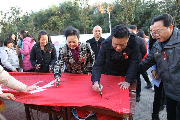 讲座中,魏教授分别从艾滋病的致病机理、传播途径及艾滋病的预防三方面向大家介绍了艾滋病相关的知识。他运用大量的真实病例及图片,结合我国目前艾滋病的流行形势及相关症状进行了详细的阐述,使同学们更清楚地了解艾滋病。同时,他指出,大家在与艾滋病人的正常交流中是不会被感染的,希望同学们关爱、理解艾滋病人,增强他们战胜疾病的勇气和信心。最后,魏主任呼吁所有人珍爱生命,从自身做起。讲座结束后,我校副校长张力等领导带领同学们来到八餐小广场参加“行动起来,向零艾滋迈进”万人签名活动,以此表达大家对世界艾滋病日的关注与重视。