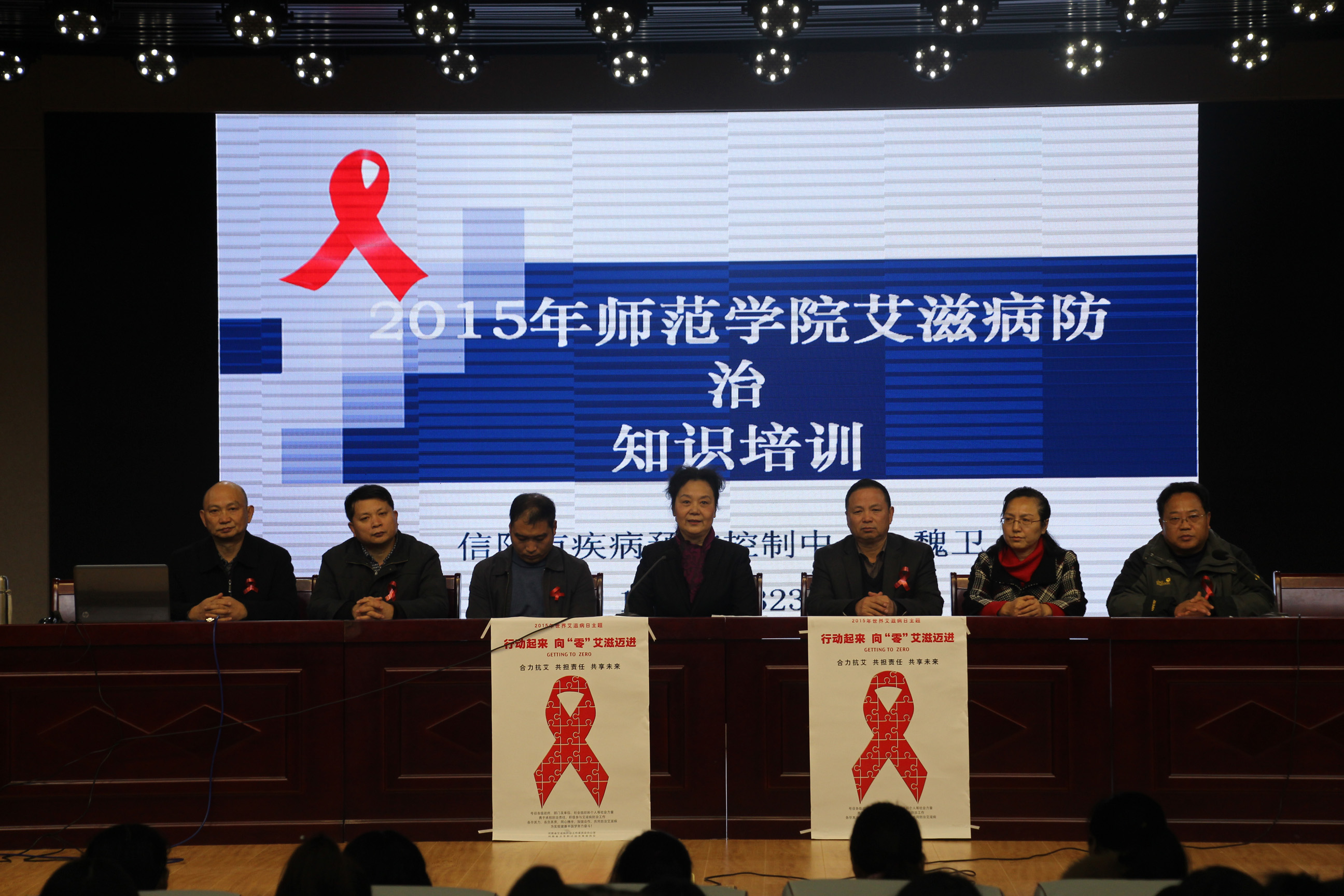29日下午,活动举办方邀请信阳市疾病控制中心性病与艾滋病防治科科长魏卫教授在理科楼报告厅开展了艾滋病专题讲座。信阳市卫生与计划生育委员会副主任程伟、信阳市红十字会秘书长张孔华、信阳师范学院团委书记王建旭、信阳师范学院bevictor伟德官网党委副书记赵东、校医院院长王晓霞以及校医院优秀工作者应邀出席此次讲座,与百余名同学共同聆听了讲座。