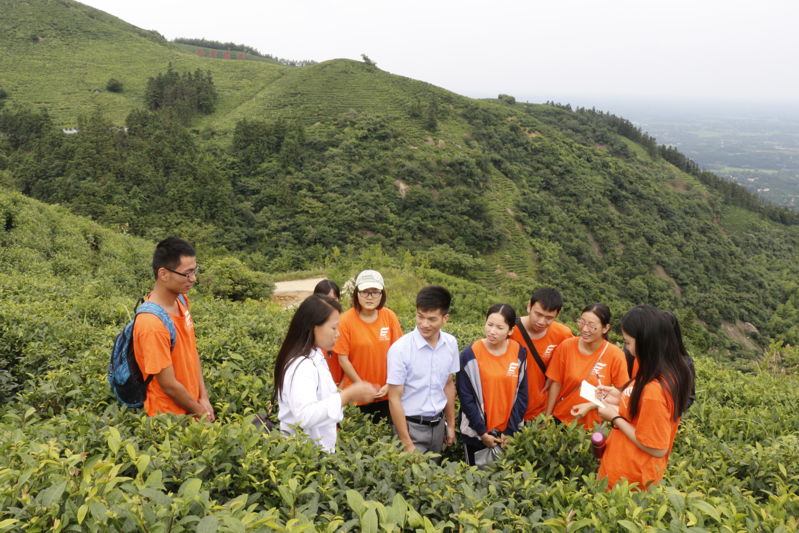 淡淡茶香盈山峦,葱茏绿意重实践。为使我院学子更好地了解信阳茶文化,进一步拓宽同学们的视野。7月6日下午,我院暑期“三下乡”社会实践志愿服务队在我院党总支副书记赵东和2013级辅导员孙太红的带领下来到固始西九华山万亩茶园-信阳毛尖种植基地参观学习。