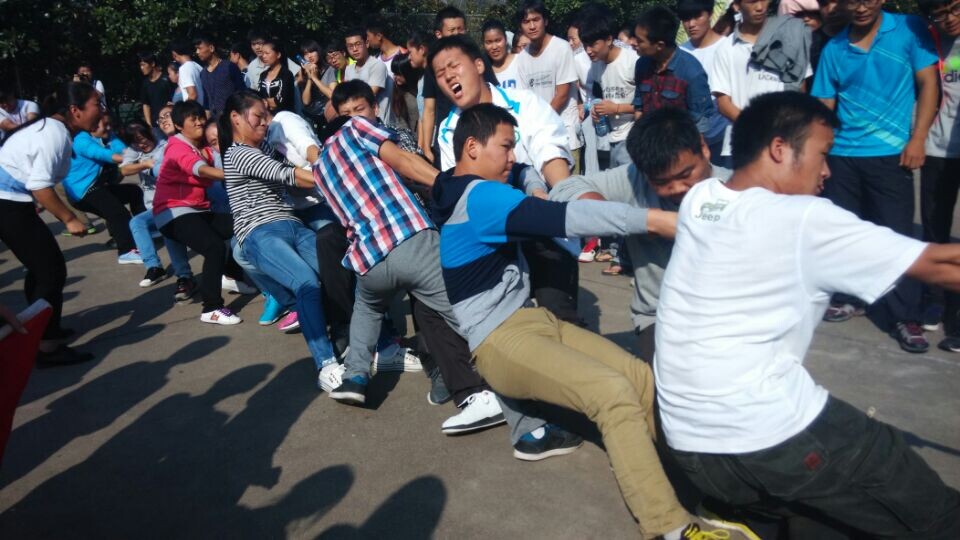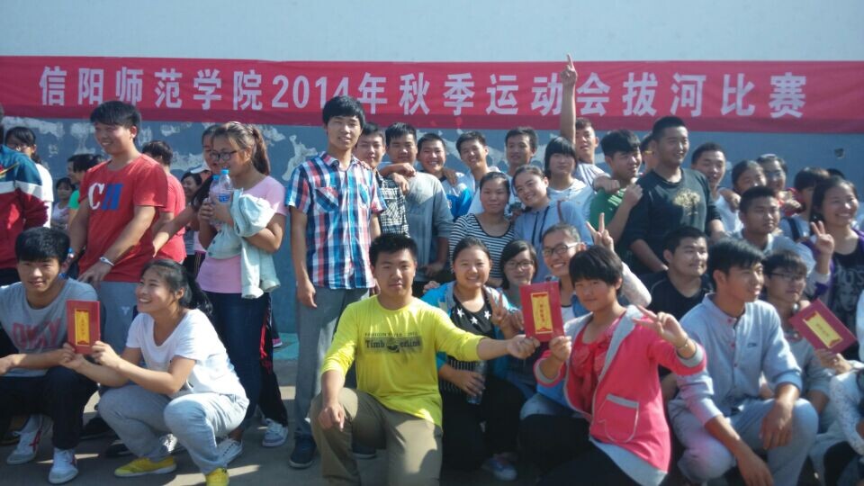 为了丰富同学们课外娱乐生活,提高同学们的综合素质,并使大一新生更好的适应丰富多彩的大学生活,10月26日上午,信阳师范学院一年一度的秋季运动会拔河比赛在社科楼篮球场正式拉开帷幕。比赛场地上人潮涌动,热闹非凡。场上,参赛队员奋力拼搏;场下,啦啦队为队员呐喊助威,场面热烈,充满朝气与激情。