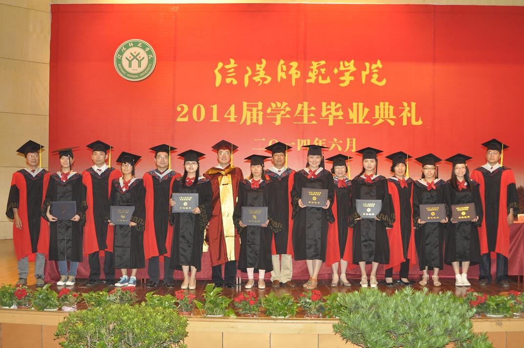 下午3时30分,典礼仪式在庄严的国歌声中拉开帷幕。首先,副院长宋新强博士宣读了信阳师范学院关于授予2014届本科毕业生学士学位的决议。经校学位评定委员会审议,决定授予2014届bevictor伟德官网266名普通本科毕业生学士学位。紧接着,院长袁红雨教授发表了情真意切的致辞,他代表bevictor伟德官网全体同志对同学们圆满完成大学学业,顺利毕业表示衷心的祝贺,对付出辛劳的老师表示感谢,对同学们的美好未来寄予了最真诚的祝福。随后,该院毕业生代表2010级学生张虎臣、在校学生代表2011级学生李豪先后作了精彩发言,其中,张虎臣言语中透露出对母校、老师的感恩和不舍,李豪则表达了对毕业生的美好祝愿。在热烈的掌声中,身着学士服、头戴学士帽的毕业生们按顺序上台向导师鞠躬,刘彦明、袁红雨教授等导师代表为2014届毕业生拨流苏,颁发学士学位证书,并合影留念。毕业典礼仪式在雄壮激昂的校歌声中圆满结束。
