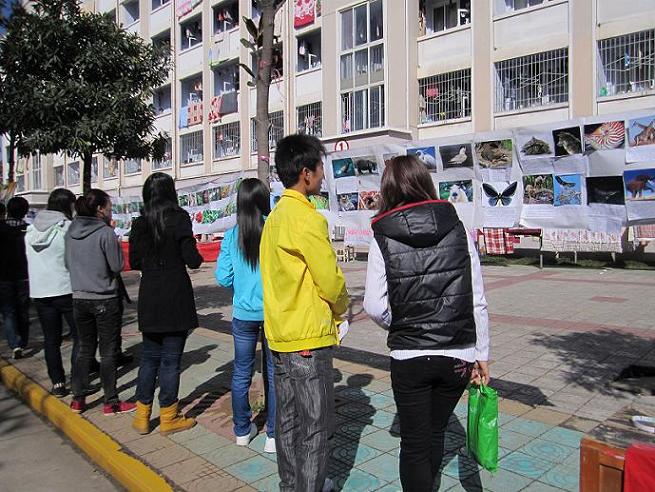 “生命礼赞”有奖竞猜活动以“抽题找图片”的形式展开,以生物小知识为基础,围绕动物、植物的种类,生活环境等特点考察大家对生物知识的积累程度。活动中,工作人员展出了金丝猴、鸭嘴兽、女贞、白兰等一系列动植物的图片,吸引了许多同学的驻足围观,同学们都积极参与竞猜活动中,为每一幅图片贴上了对应的注释,并领取了相应的奖品,现场欢声笑语,气氛十分活跃。