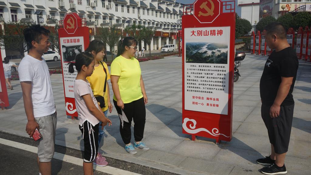 在洋河镇中心学校,宣讲队员为在场的家长和学生发放了宣传手册,并向他们讲述了大别山精神的内涵和意义。活动期间,社会实践大学生们以生动的语言和饱满的感情,向学生及家长讲述信阳市革命先烈的英勇事迹,描述他们为信仰,抛头颅、洒热血,用自己鲜活的生命换来大别山人民幸福的生活,真挚的神情、牵情的话语,引起了家长和学生们的深深共鸣,掌声持久。现场交流互动,围绕“什么是大别山精神”、“身边的大别山精神”“如何传承大别山精神”等问题展开讨论发言,阐述个人见解。社会实践小分队负责人武成龙说:“大别山精神是从中国共产党诞生到新中国成立,以信阳为中心的鄂豫皖三省交界地区,由中国共产党及其领导的武装力量和革命群众,为了实现共产主义理想、建立新中国而形成的革命精神。我们生活在这片红色的土地上,更应该时刻牢记革命先烈的英勇事迹和革命精神,加强自身修养,将这些红色基因传承下去”。活动结束时,大学生社会实践队员们面对在党旗下庄严宣誓,同时表示将坚决拥护中国共产党的领导,不忘初心,牢记使命,将继续继承和发扬光大别山精神。