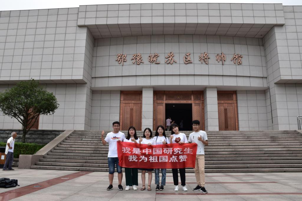作为新时代的研究生,始终铭记习近平总书记提出的“热爱祖国是立身之本、成人之基”的谆谆教诲,通过参观鄂豫皖苏区首府革命博物馆、鄂豫皖苏区首府烈士陵园等活动,将“革命精神”与“时代使命”相结合。以革命先烈为榜样,不忘初心,继续前行,为中国特色社会主义和中国梦的建设贡献力量,为祖国点赞!