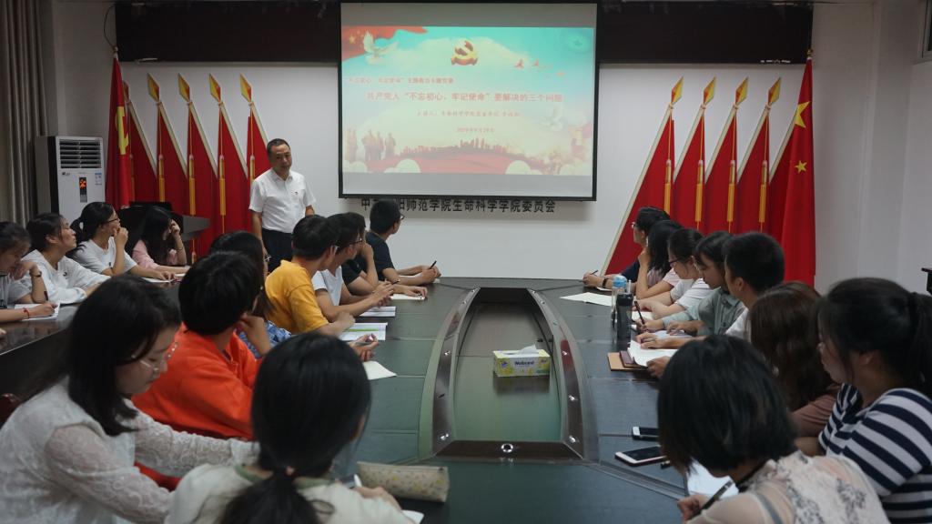 为认真贯彻习近平总书记在“不忘初心、牢记使命”主题教育工作会议上的精神,9月29日,我院于生物楼412会议室召开“不忘初心,牢记使命”主题教育专题党课。我院党委书记李向阳,党委秘书孙太红与我院学生第三、第四党支部全体成员共同参与此次党课。此次党课由李向阳主讲。