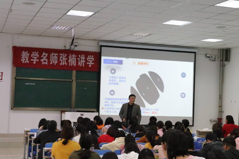 10月18日,应生科院邀请,光山县司马光中学校长、校友莅临我院讲学。张楠运用厚重的积淀、丰富的案例,为听众开讲《教师专业化成长的智慧与思考》,生科院生物科学专业部分本科生和正在参训的初中生物国培学员逾百人,聆听了讲座,听众纷纷表示,理论有深度、操作有温度,受益匪浅。