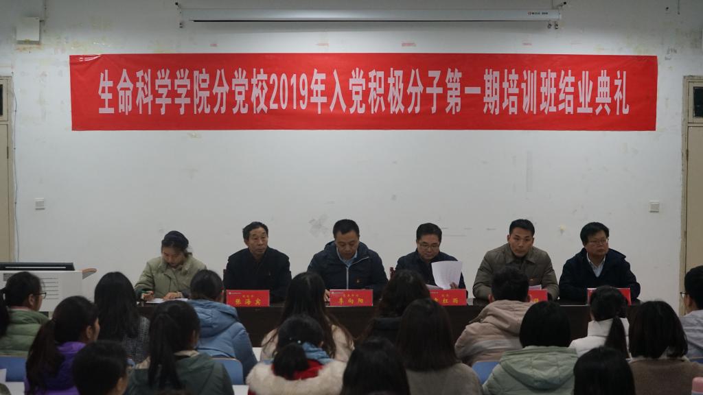 11月26日,我院于生物楼414多媒体教室举行2019年入党积极分子第一期培训班结业典礼。院党委书记李向阳,党委委员、院长袁红雨,党委副书记、副院长宋新强,党委委员、副院长张海宾,纪检委员、遗传研究所副所长饶本强共同出席此次活动。典礼由宋新强主持。