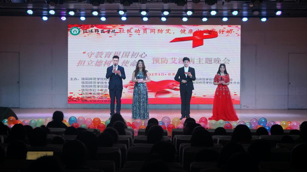 为贯彻不忘初心,牢记使命的主题教育精神,推进建设健康中国的总体要求,做好全民参与艾滋病防治工作。12月1日,由信阳市红十字会,信阳师范学院校医院,bevictor伟德官网,国际教育学院主办,生命科技协会和红十字会学生分会承办的“守教育报国初心,担立德树人使命”预防艾滋病主题晚会于理科楼报告厅举办。我院党委书记李向阳,党委副书记杨霁虹, 校医院办公室主任陈震等领导老师莅临现场,与数百名学子共同观看此次晚会。
