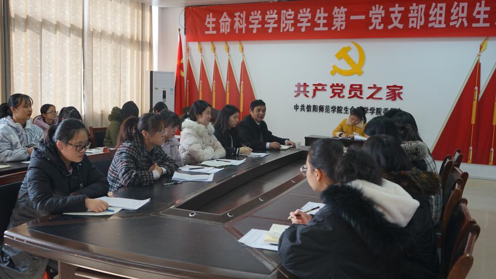 为深入贯彻党中央“不忘初心、牢记使命”主题教育领导小组《关于第二批主题教育单位基层党组织召开专题组织生活会和开展民主评议党员的通知》的要求,12月5日,在生物楼412会议室,我院召开学生第一党支部专题组织生活会,党委副书记杨霁虹和学生第一党支部书记杨娟娟以及学生第一党支部全体党员参加会议。会议由杨娟娟主持。
