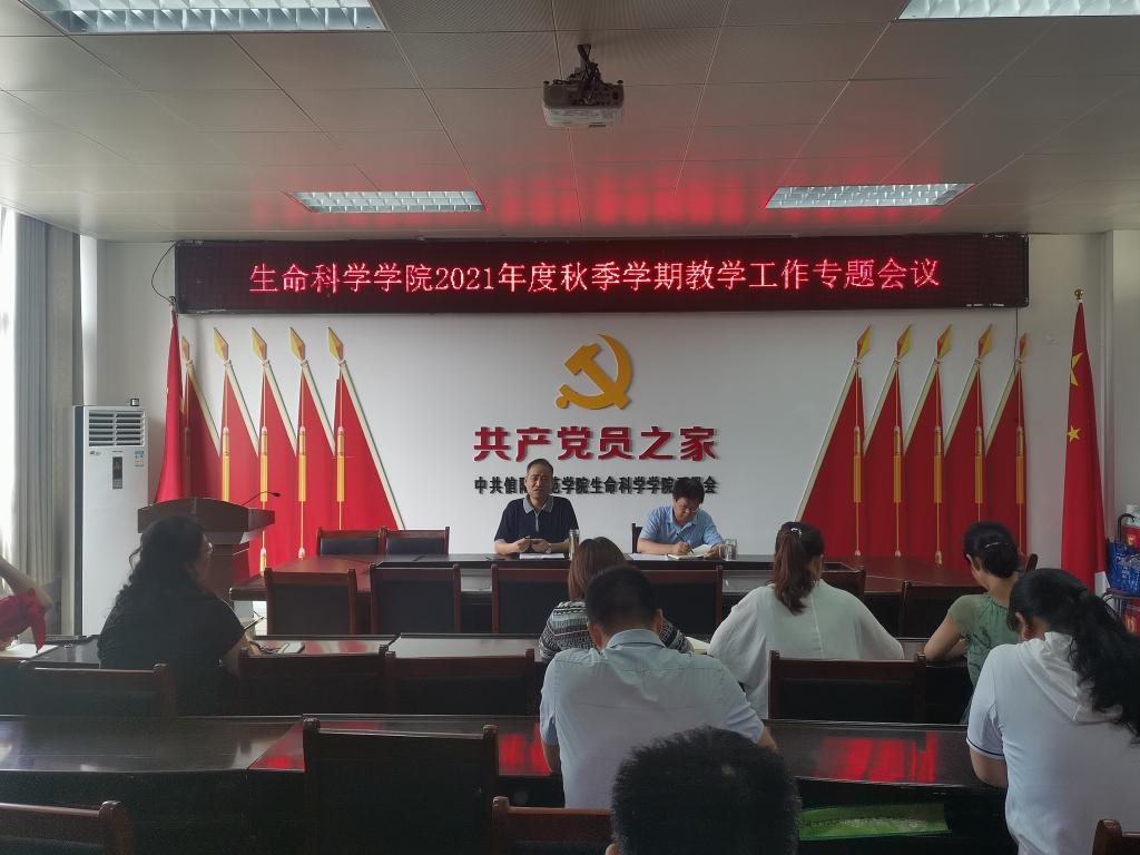 为确保疫情防控期间本科教学工作顺利开展,8月24日上午,bevictor伟德官网党委在生物楼412会议室召开2021年度秋季学期教学工作专题会议,党委书记李刚、院长饶本强、各系主任、行政办公室主任、实验教学中心负责人、教学秘书和全体辅导员参加会议。会议由院长饶本强主持。
