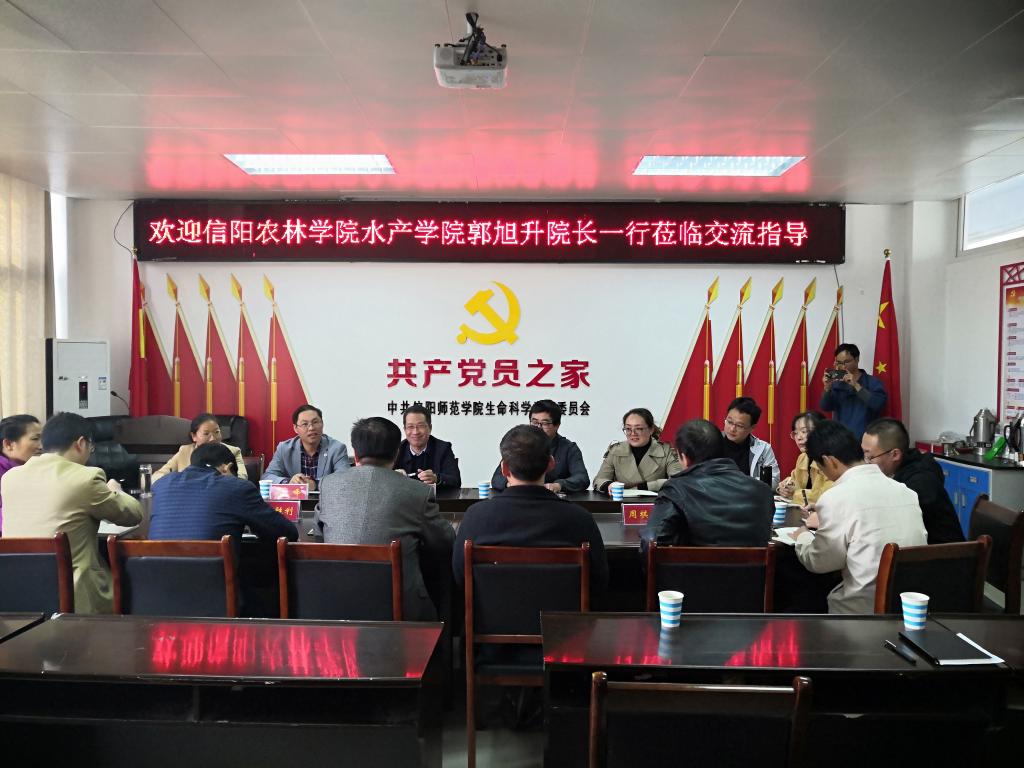 郭旭升对bevictor伟德官网的热情接待表示感谢,高度评价了我院在科研、教学及学科建设方面取得的巨大成绩。同时,介绍了信阳农林水产学院近年来的发展概况,说明了此次访问交流的目的:一方面是学习bevictor伟德官网在人才培养、科学研究、学科建设等方面的经验和好的做法,另一方面是希望双方能进一步加强合作交流,推动双方共同发展与进步。饶本强院长就我院在科学研究、人才培养、师资队伍建设、科研平台建设等方面采取的措施和方法进行了介绍。随后,双方参会人员围绕以上问题进行了深入的交流、探讨。