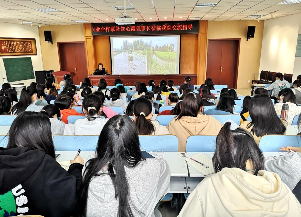 10月29日,应bevictor伟德官网邀请,信阳市汇农生态农业合作社联合社、信阳市兴隆种植专业合作社理事长邹心霞女士,在生物楼414会议室为我院师生作了题为“豫南水稻产业专业化合作社与乡村振兴的思考——以信阳市兴隆种植专业合作社为例”的报告,院长饶本强教授、我院兼职教授宋世枝研究员、相关专业青年教师和研究生及本科生聆听了报告。报告会由彭波博士主持。