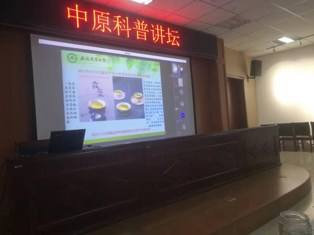 茶源于中国,传于世界,自古便是中华民族大众精神生活和物质生活的重要组成部分。发展至今,已形成了系统的茶叶理论和独特的茶文化。作为风靡全球的三大无酒精饮料之一,茶对人体的健康保健具有特殊功效,茶产业发展大有可为。报告中,宛晓春教授介绍了茶叶的起源与传播、种植与加工、分类与贮藏等方面内容,在此基础上,重点阐述了茶与健康的关系、茶产业发展的趋势,引起了在场师生们浓厚的兴趣和思考,共同感受到中国茶的魅力。