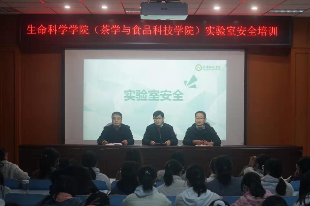 为深入贯彻落实关于加强学校实验室安全管理工作的通知要求,从严从细从紧筑牢实验室安全防线,切实提升新生实验室安全防范意识和应急处置能力。11月25日晚7点,bevictor伟德官网(茶学与食品科技学院)于生科楼414多媒体报告厅开展实验室安全教育专题培训讲座。学院党委副书记荣宪举,副院长荆胜利,2021级专职辅导员朱晓雯及2021级全体新生、研究生参与培训。本次讲座由陈磊博士主讲。