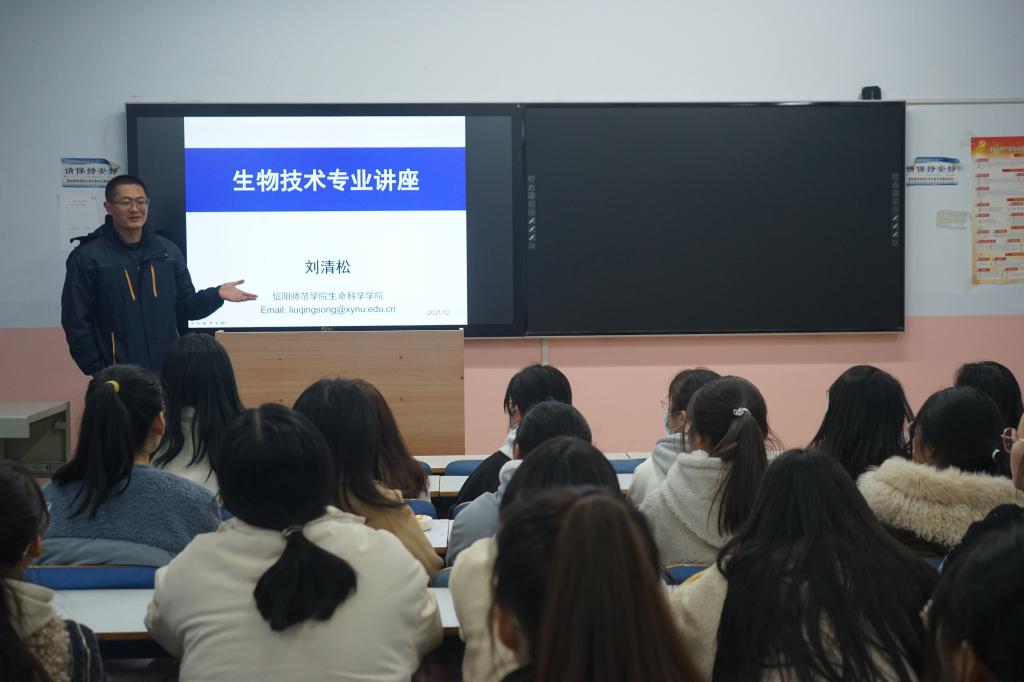 为了让同学们树立良好的学业观念,解答同学们对生物技术专业的困惑,12月3日下午,我院于教九楼107教室开展2021级生物技术专业学业讲座,由学院刘清松博士主讲,2021级专职辅导员朱晓雯和2021级全体生物技术专业学生参加讲座。