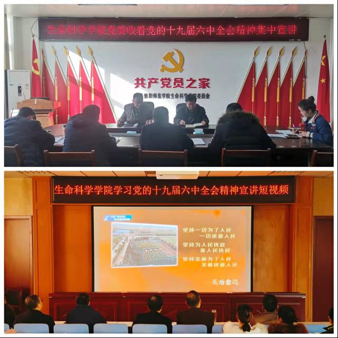 党委书记李刚强调,深入学习宣传贯彻党的十九届六中全会精神是当前和今后一个时期的重大政治任务,全体师生把思想和行动统一到党中央决策和省委部署及校党委工作安排上来,与学习习近平总书记“七一”重要讲话精神和做好当前教育教学重点工作结合起来,持续深化巩固党史学习教育成果,纵深推进“我为群众办实事”实践活动,通过中心组理论学习、主题党日活动、党支部“三会一课”、青年理论学习小组学习等形式,进一步引导学院党员干部深刻理解“两个确立”的决定性意义,准确把握“十个明确”的精神实质,自觉做“两个确立”的坚决拥护者和“两个维护”的坚定践行者,切实肩负起教书育人的政治责任,不断推动信阳师范学院高质量发展,以优异成绩迎接党的二十大胜利召开。