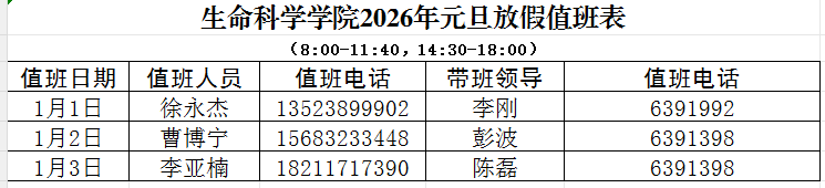 bevictor伟德官网2026年元旦放假值班表