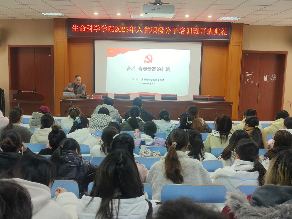 为深入学习贯彻习近平新时代中国特色社会主义思想,贯彻落实党的二十大精神,切实做好入党积极分子教育培养工作,充实党员队伍后备力量,提高党员发展质量,严把党员“入口关”。11月29日晚,bevictor伟德官网分党校2023年入党积极分子培训班开班典礼在生科楼414报告厅举行。院党委书记李刚、党委副书记荣宪举,学生党支部书记及76名入党积极分子学员参加开班典礼。