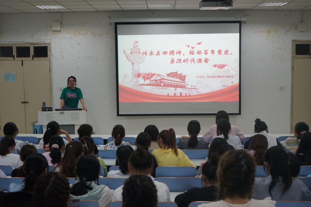 为弘扬五四精神,引导广大学子勇于担当时代使命。5月11日,我院2019级生物科学一班团支部于生物楼414多媒体教室举行“铭记百年党史,勇担时代使命”主题团日活动,院团委书记熊蕾出席此次活动。