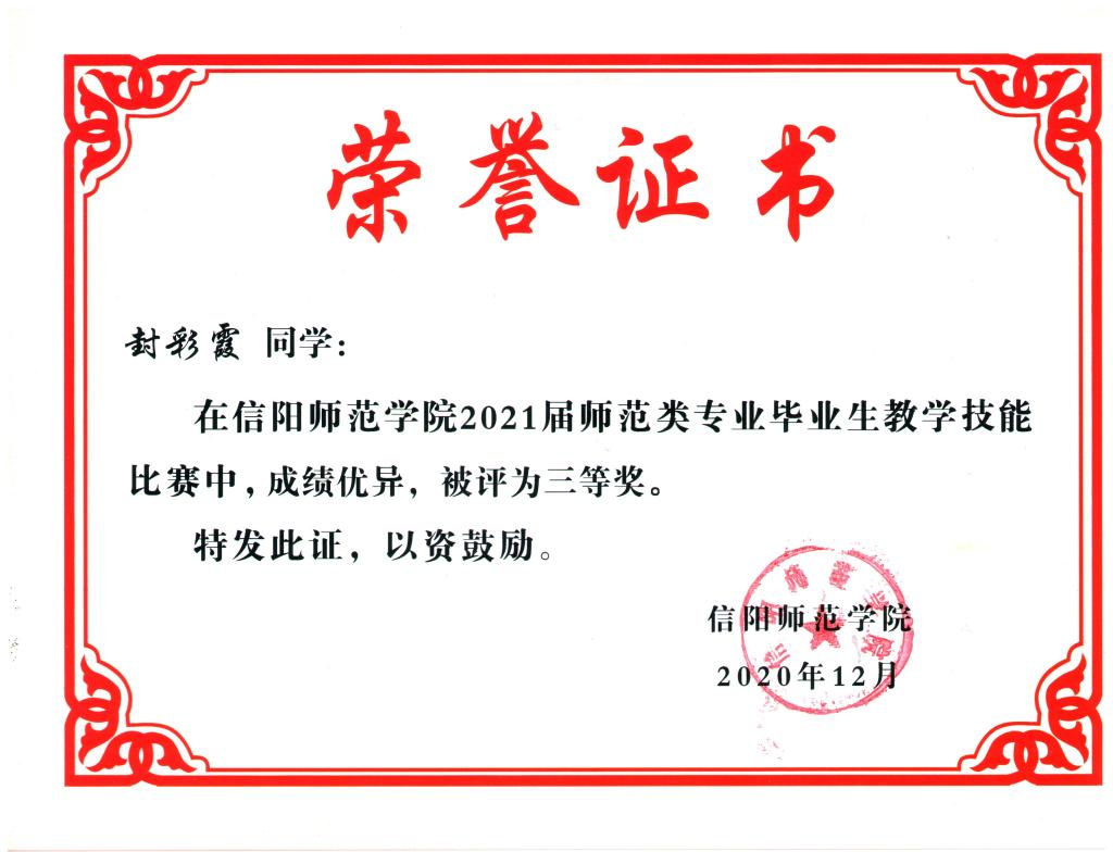2020年河南省师范生教学技能竞赛三等奖--封彩霞